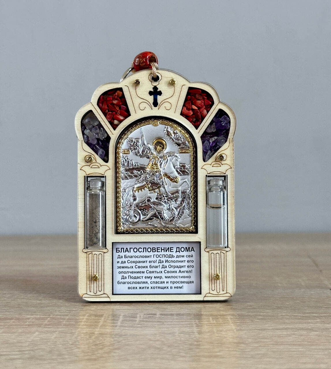 Благословение дома Георгий Победоносец, икона 120x82мм серебряная Греческая.