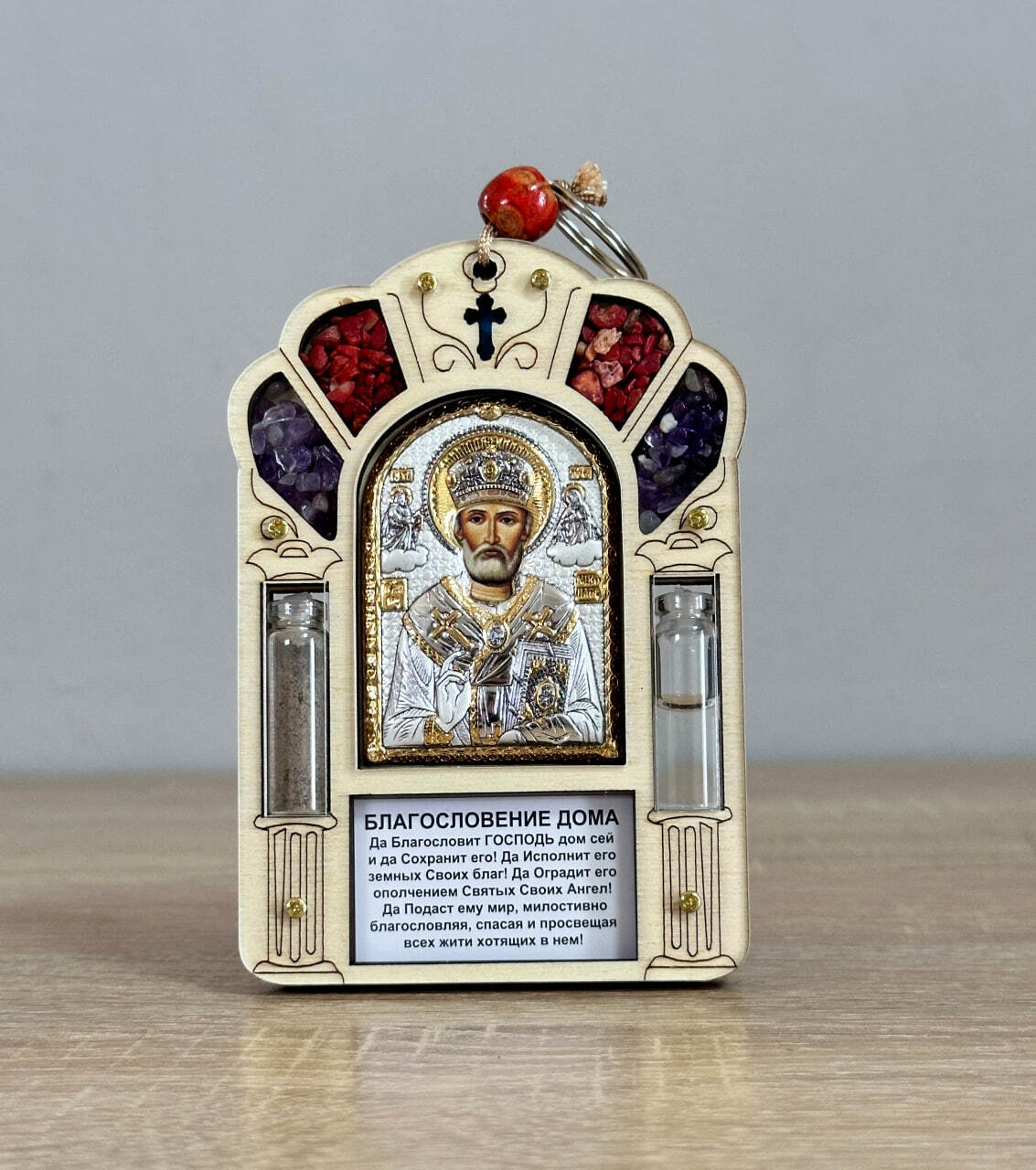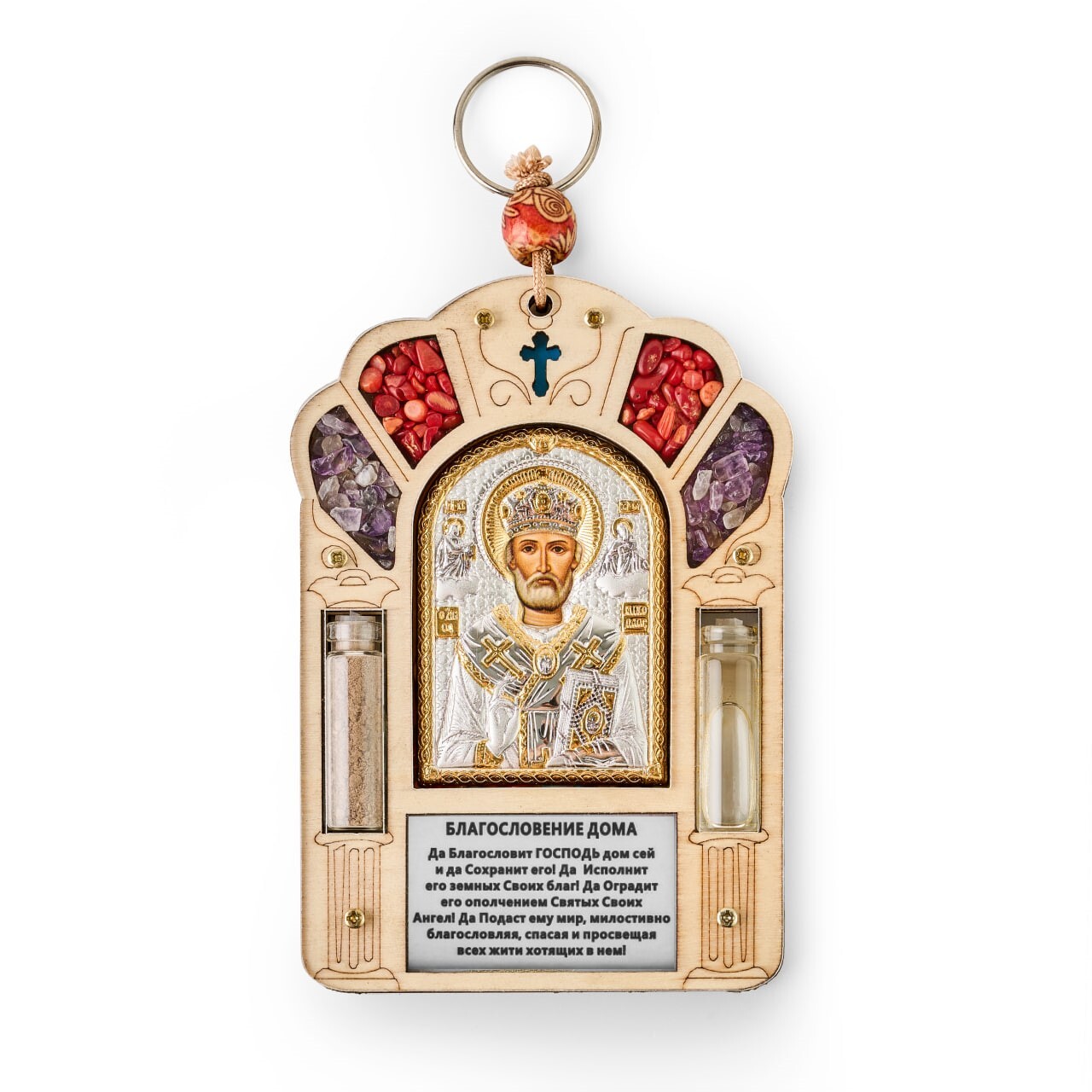 Благословение дома Николай Чудотворец, икона 120x82мм серебряная Греческая.