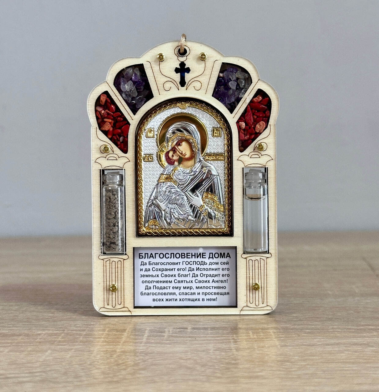 Благословение дома Владимирская БМ, икона 120x82мм серебряная Греческая.