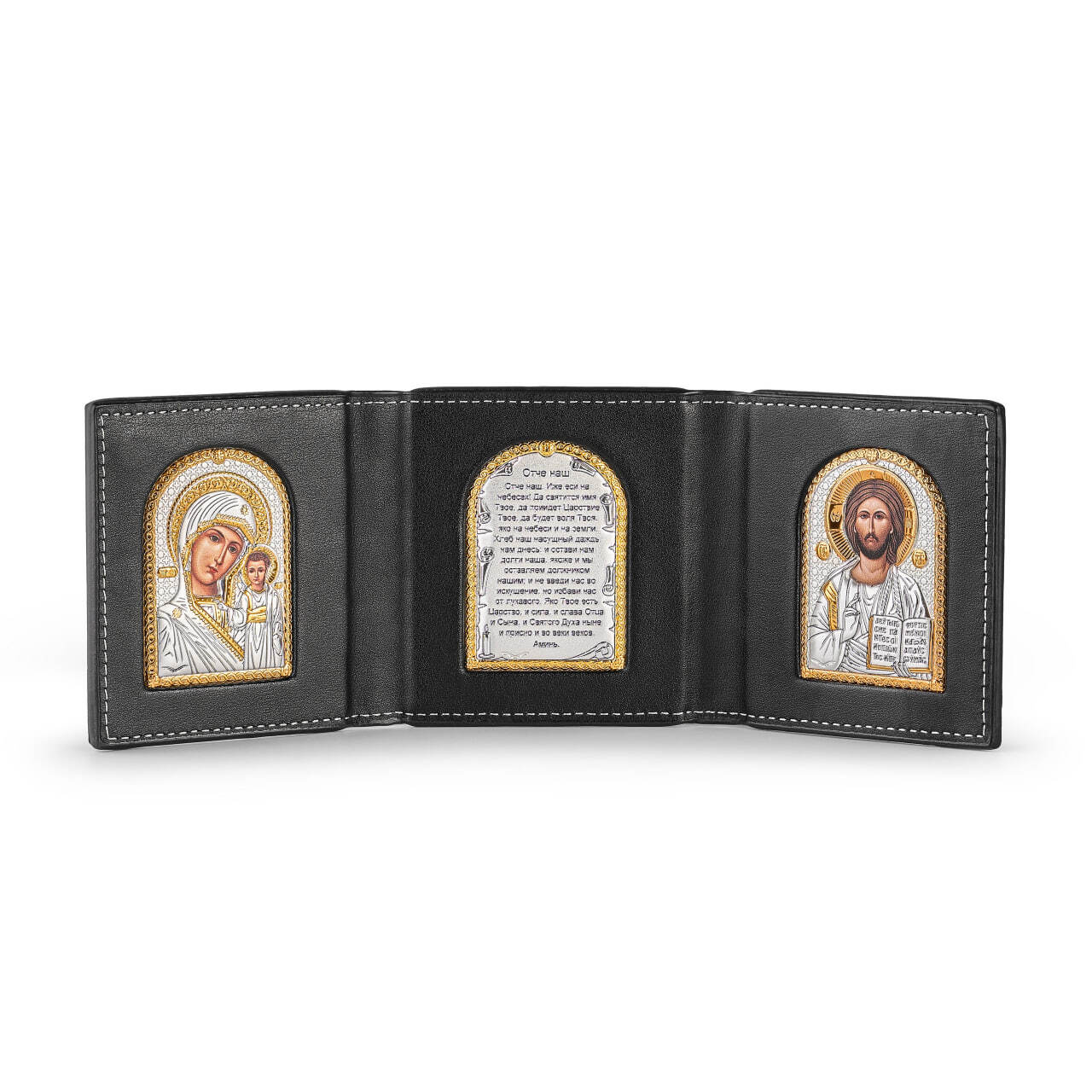 Складень карманный Спаситель Молитва Казанская 90х255мм икона серебряная Греческая