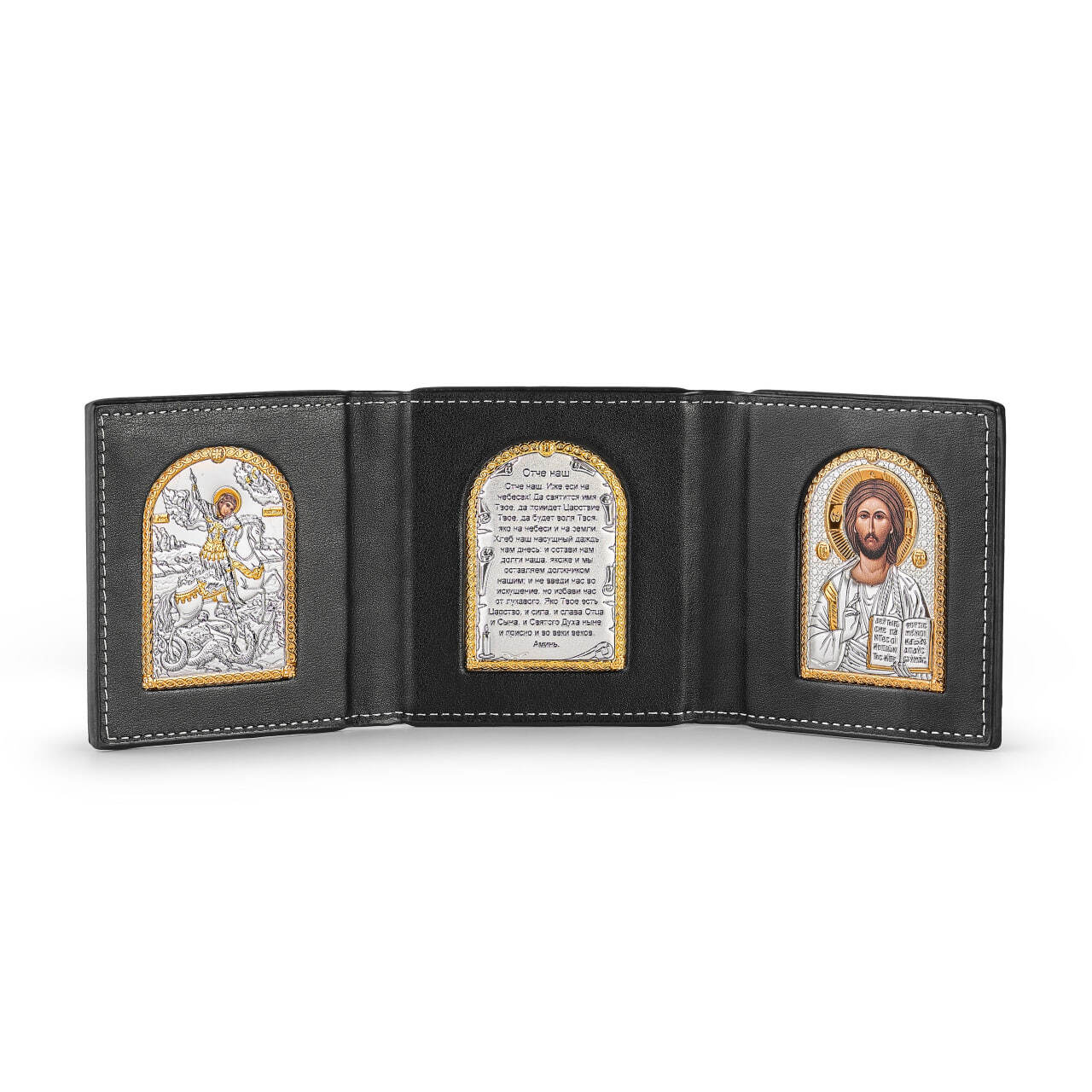 Складень карманный Спаситель Молитва Георгий 90х255мм икона серебряная Греческая