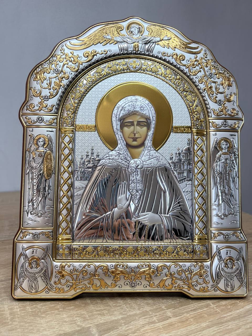 Матрона 206х207мм серебряная Греческая икона