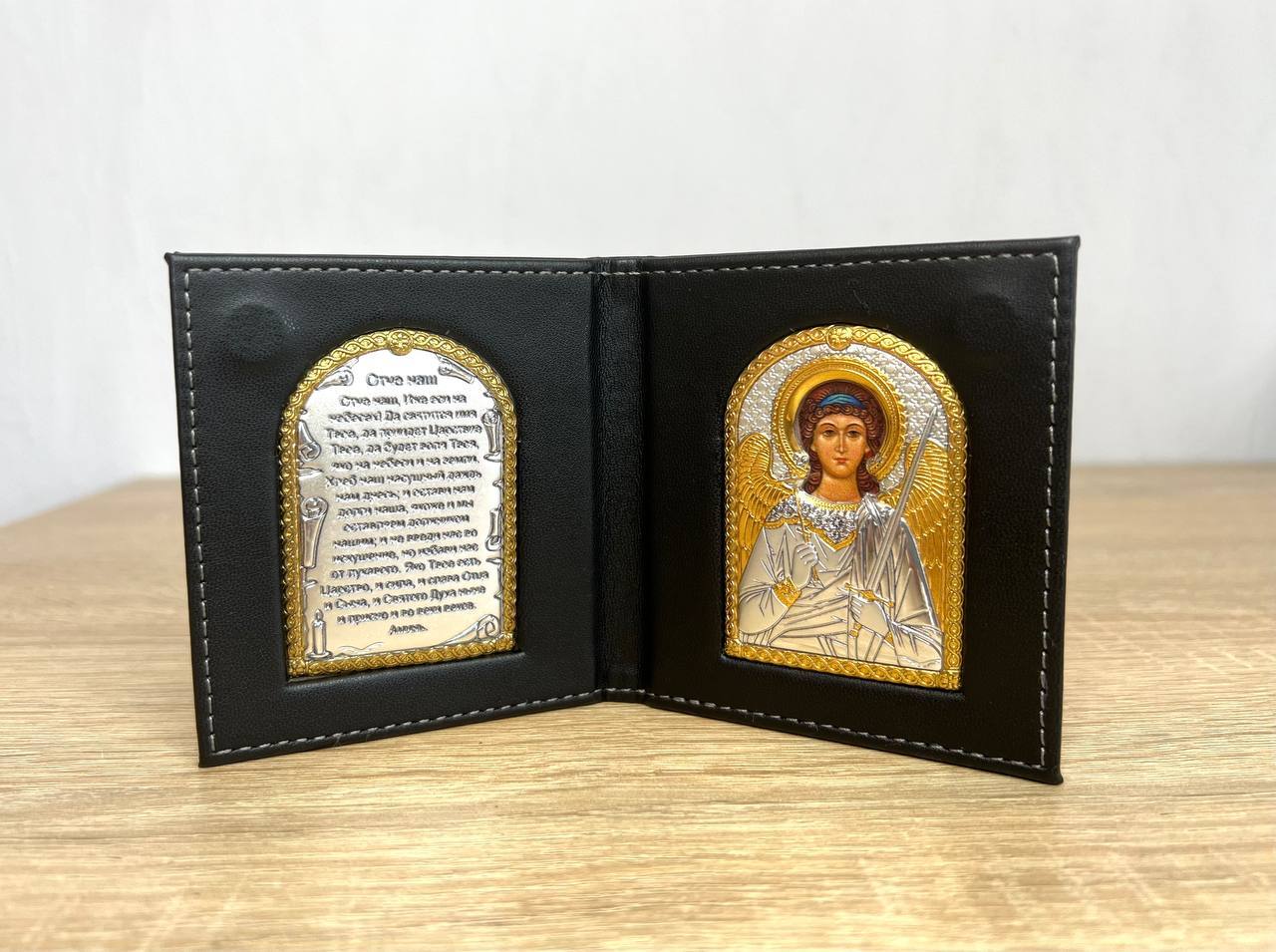 Складень карманный Ангел Хранитель с молитвой 95х105мм серебряная Греческая.