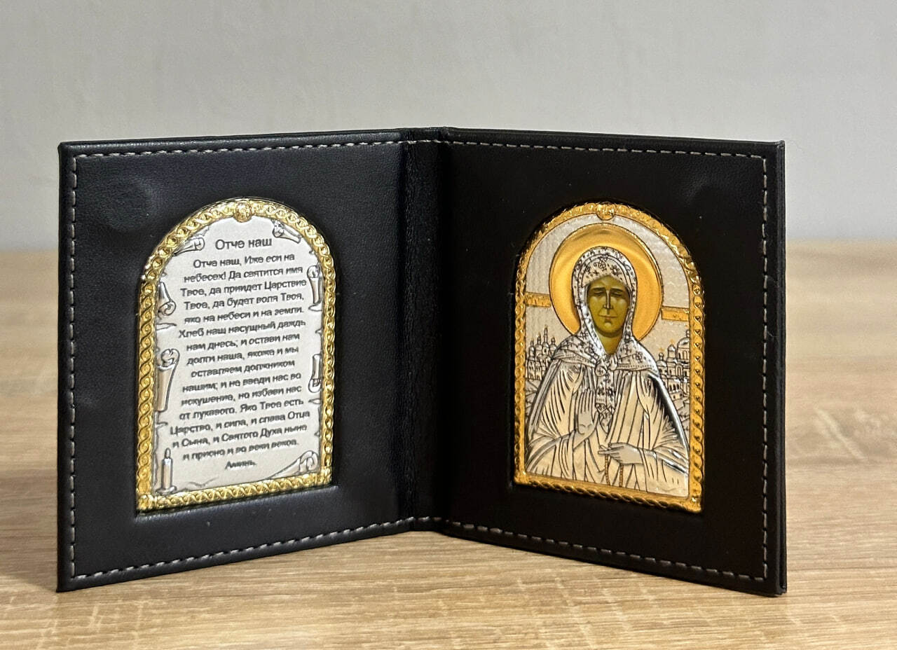 Складень карманный Матрона с молитвой 95х105мм серебряная Греческая.